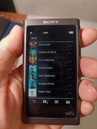 Reproductor de audio portátil Sony NW-A55 en color negro. Precioso reproductor muy bien cuidado, funciona perfectamente, la batería está en buen estado. Ni un solo rasguño. Admite FLAC, WMA, AAC, ALAC, WAV, AIFF, APE, DSD, MQA, MP3. 16 GB de memoria interna y ranura para tarjeta microSD hasta 2 TB. Con el cable de carga. Sonido espectacular, ideal para escuchar música en modo local, sin distracciones con aplicaciones de Android, sólo música.
