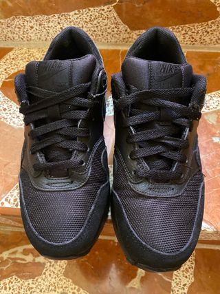 Zapatillas Nike Air Max originales en color negro total. Muy cómodas y fáciles de combinar con cualquier look. ✔ Talla 38 (24 cm) ✔ Color negro ✔ Muy poco uso ✔ Suela en muy buen estado (ver fotos) ✔ Sin roturas ni desperfectos Perfectas para uso diario, colegio o deporte ligero. Se entregan limpias y listas para usar. 📍 Entrega en mano o envío por Wallapop.
