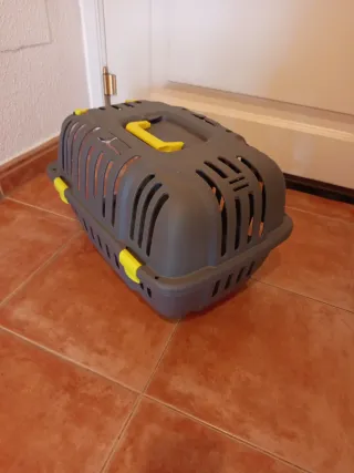 Transportín para perros o gatos con un diseño práctico y seguro. Ideal para viajes o visitas al veterinario. - Asa superior para facilitar el transporte. - Rejillas de ventilación para una buena circulación del aire. - Cierre seguro para la puerta.