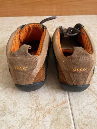 Zapatillas ECCO originales en piel y ante en tonos marrón con interior naranja. Muy cómodas y ligeras, perfectas para caminar mucho o para uso diario. ✔️ Marca ECCO ✔️ Talla 37 ✔️ Piel y ante de calidad ✔️ Suela flexible y cómoda Están en buen estado con uso normal (visible en las fotos). Ideales para caminar, viajar o para el día a día. Se pueden ver sin compromiso. ECCO, zapatillas ECCO, zapatos cómodos mujer, zapatillas piel, sneakers mujer, zapatos caminar.
