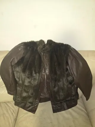 Abrigo de mujer con un diseño elegante y moderno. - Mangas de cuero. - Cuerpo de pelo sintético.