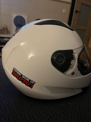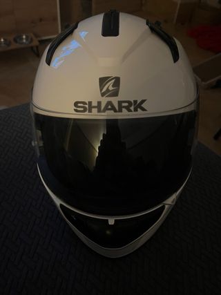 Casco de moto de la marca Shark en color blanco. Talla M - Diseño aerodinámico. - Visera transparante con visor oscuro. - Ventilación superior. - Las almuadillas están en muy buen estado, ya que lo he usado muy poco. Siempre guardado en su funda.