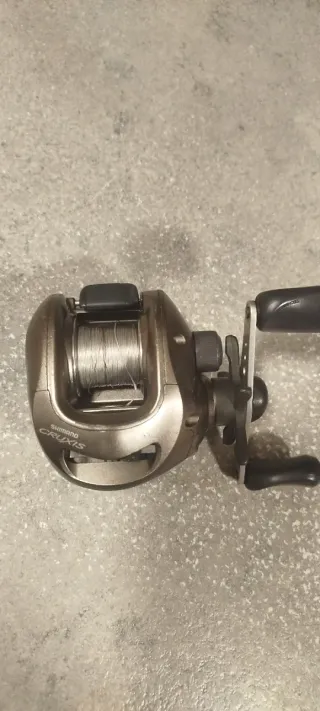 Carrete de casting Shimano Cruxis 201. - Color: Bronce. - Mango: Negro.