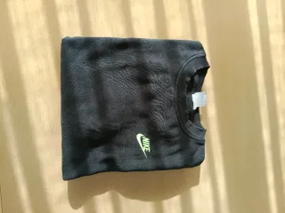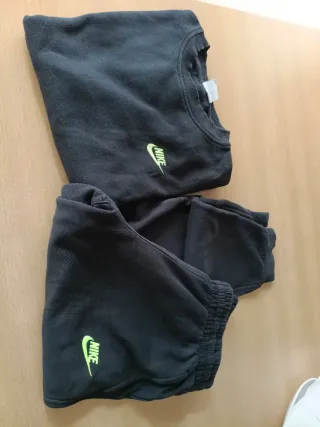 Conjunto de chándal Nike para niño en talla L. Incluye sudadera y pantalón. - Color negro. - Logo Nike en color verde lima.