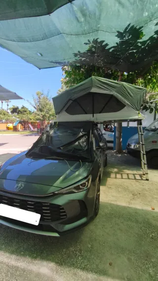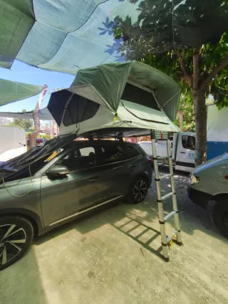 Tienda de campaña para dos personas diseñada para instalarse en el techo de un coche, ideal para aventuras al aire libre. - Incluye tendedero y zapatero -