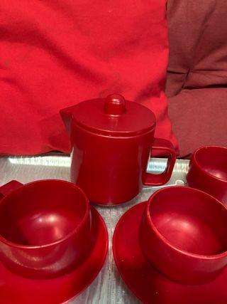 Conjunto de vajilla para el desayuno, ideal para compartir. - Cafetera - Dos tazas con sus platos