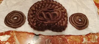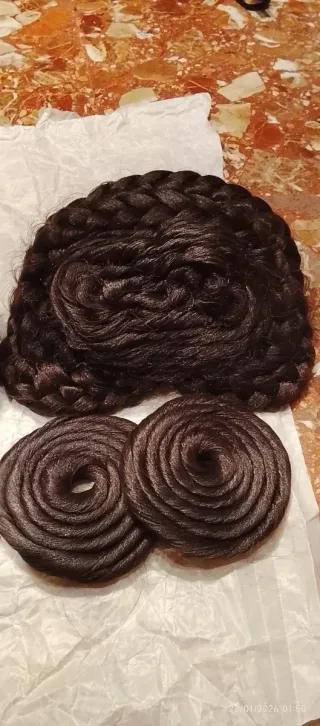 Moño de fallera con un bonito diseño trenzado y rizado. Ideal para trajes regionales. - Elaborado con cabello sintético de alta calidad. - Color castaño oscuro.