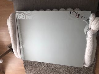 Espejo rectangular con un diseño decorativo en las esquinas. - Medidas: 75 cm de alto x 60 cm de ancho. - Acabado con motivos florales esmerilados.