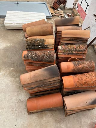 Lote de 320 tejas árabes de barro, ideales para tejados tradicionales. - Material: Barro cocido. - Diseño curvo característico. - Color terracota. No se hacen envios