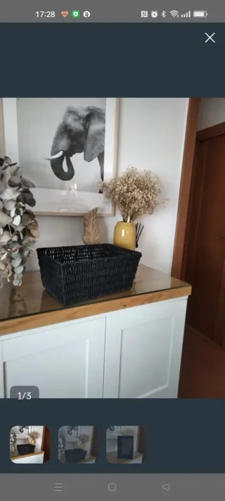 Cesta rectangular de mimbre, perfecta para organizar tus pertenencias con estilo. - Diseño tejido a mano. - Tonos oscuros que combinan fácilmente.