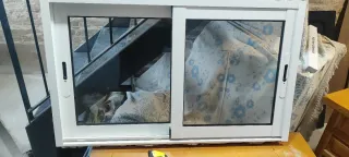 Ventana corredera de aluminio en color blanco. Puesta por error y después quitada, or lo demás nueva. La ventana es climalit - Medidas: 100 cm de ancho x 60 cm de alto. - Dos hojas correderas.