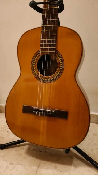 Guitarra antigua marca Vicente Tatay. Presenta algunos desperfectos estéticos debidos a la edad, pero no afectan al sonido. La guitarra tiene gran resonancia incluso en los trastes más altos. No hago envíos.