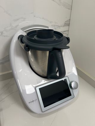 Vendo Thermomix TM6 en perfecto estado, muy cuidada y funcionando perfectamente. Incluye todos sus accesorios originales y además: - Cortador para rallar, laminar y cortar verduras de forma rápida. Ideal para ensaladas, verduras, tabla de embutidos. etc. - Bolsa oficial de transporte, perfecta para guardarla protegida o llevarla cómodamente. También incluye: - Varoma completo - Cestillo - Mariposa - Espátula - Tapa antisalpicaduras - Libro de recetas Es una buena oportunidad porque el cortador y la bolsa de transporte son accesorios que se venden a parte (159€ + 50€ en la página oficial de Thermomix).
