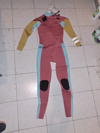 Traje de surf de neopreno con diseño moderno y colores vibrantes. - Mangas largas. - Paneles de contraste en azul y amarillo. - Rodilleras reforzadas.
