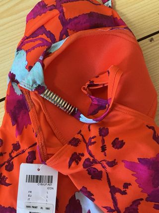 Bañador de una pieza con un vibrante estampado floral. - Diseño con tirantes cruzados en la espalda. - Detalle metálico en los tirantes. - Etiqueta de la marca adjunta.