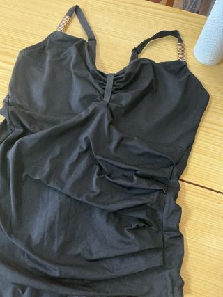 Traje de baño de la marca Chantelle en color negro. Diseño elegante y favorecedor. - Tirantes con detalle metálico. - Fruncido en la parte delantera. - Abertura en la pierna.