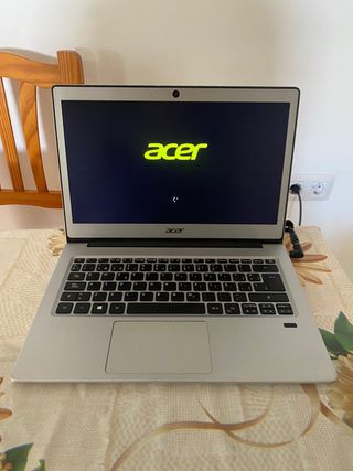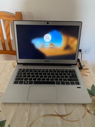 Ordenador portátil Acer en color plata y negro. - Diseño elegante y moderno. - Teclado completo. - Amplia zona táctil. - 4Gb de RAM - SSD M.2 128GB - Windows 10 Se vende sim cargador, la batería dura muy poquito.
