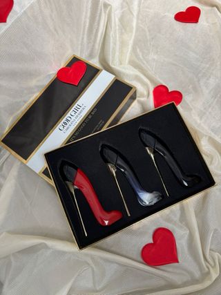 Perfume Good Girl de Carolina Herrera en su presentación de 50ml. - Fragancia Eau de Parfum Natural Spray. - El diseño icónico del frasco es un zapato de tacón alto. - El frasco es de color negro con detalles dorados.