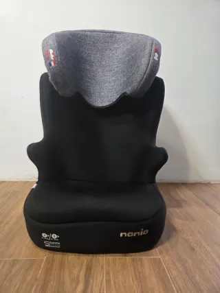 Silla de coche Nania con sistema Easyfix, apta para niños de 15 a 36 kg. - Tapicería en color negro y gris. - Reposacabezas ajustable.