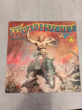 Vinilo del álbum Beatin' the Odds de Molly Hatchet. - Portada con arte de fantasía épica. - Incluye la banda y el título del álbum. - Sello discográfico KRANKA visible.