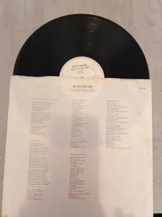 Vinilo del álbum Flesh + Blood de Roxy Music. - Formato LP. - Portada con diseño artístico.