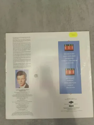 Vinilo del álbum Whenever You Need Somebody de Rick Astley. - Portada con imagen del artista. - Título del álbum en la parte inferior.