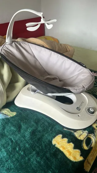 Mecedora de la marca 4moms. - Diseño moderno y ergonómico. - Colores neutros. - Incluye arnés de seguridad.