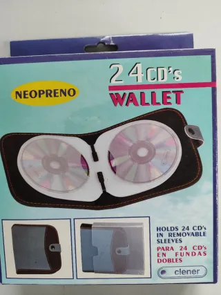 Funda tipo cartera para guardar hasta 24 CDs. Fabricada en neopreno. - Capacidad para 24 CDs. - Diseño en neopreno. - Incluye fundas dobles.