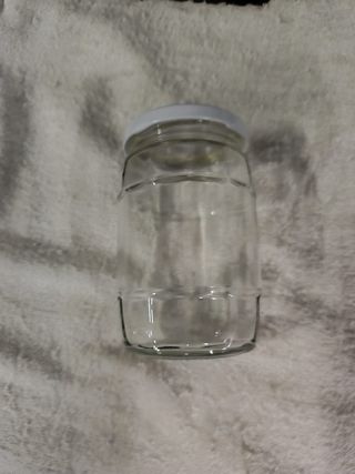 Bote de cristal 300ml con tapa blanca ,sin usar.