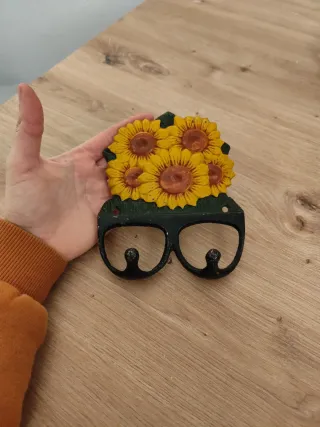 Este perchero decorativo presenta un diseño de girasoles. - Elaborado en metal. - Combina colores negro y amarillo.
