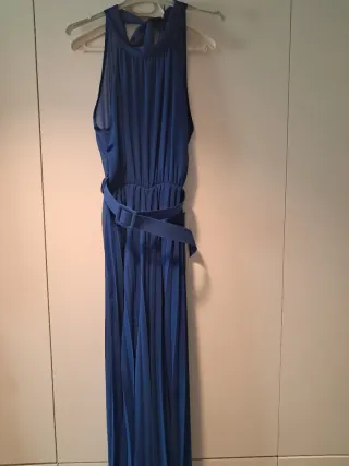 Mono largo azul plisado con cinturón