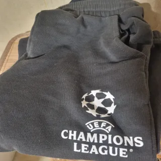 Conjunto de chándal con diseño de la UEFA Champions League. - Sudadera con capucha. - Pantalón a juego. - Estampado de estrellas. Comprado el 7 de enero ,( puefo enseñar ticket de compra)Puesto una vez lo estrenó aún quedándole muy justo ,quisiera venderlo y comprarle una talla más .