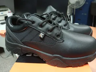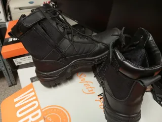 Zapatos de seguridad en talla 44, ideales para vigilancia y trabajos que requieran protección. - Diseño robusto y duradero. - Cierre con cordones.