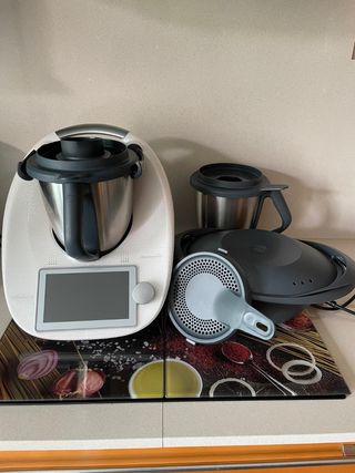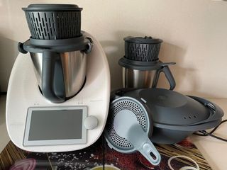❄️✨ Accesorios originales Thermomix TM6 Snow – Lote completo ✨❄️ Se vende Thermomix TM6 ,completo de accesorios originales Thermomix TM6 Snow edición, en muy buen estado y totalmente funcionales. Ideal como repuesto o para tener un segundo vaso siempre disponible. 🔹 Incluye: ✅ 2 vasos completos TM6 Snow de acero inoxidable (con cuchillas, tapa y cubilete) ✅ Varoma completo TM6 Snow (recipiente, bandeja y tapa) ✅ Tapa antisalpicaduras original TM6 ✅Garantía hasta Noviembre del 2027 🔹 Estado: Muy bien cuidados, limpios Sin golpes ni desperfectos