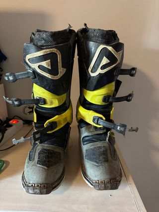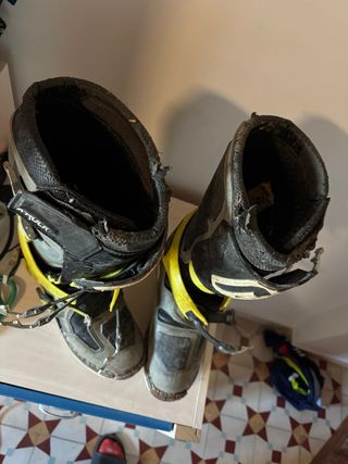 Botas acerbis x rock enduro o motocross articuladas. Talla 43 Con marcas de uso tal y como se ve en las fotos. Las suelas están en buen estado, lo único a destacar que uno de los enganches de la bota derecha se ha roto y al romperse se ha descosido. Tengo el enganche roto también. Si quieres más fotos o información contacta sin compromiso. Gaerne sg12