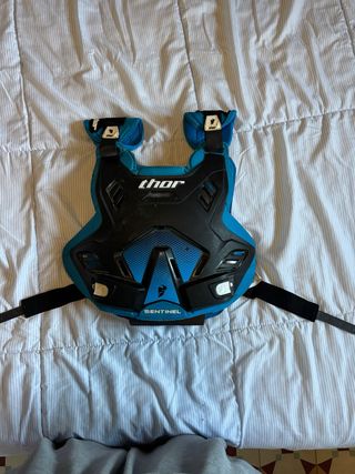 Peto protector Thor Sentinel para motocross en color azul y negro. Diseñado para ofrecer protección en la parte superior del cuerpo. enduro - Marca: Thor - Modelo: Sentinel - Color: Azul y negro - Cierres ajustables. talla M/L