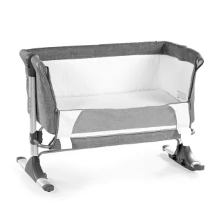 Cuna colecho con un diseño moderno y funcional, ideal para tener a tu bebé cerca. - Estructura metálica. - Laterales de tejido gris. - Colchón incluido. - Laterales con malla transpirable.