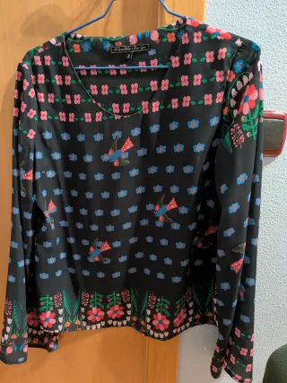 Blusa con un estampado vibrante y llamativo. - Diseño con flores y pájaros. - Mangas acampanadas. - Cuello cuadrado.