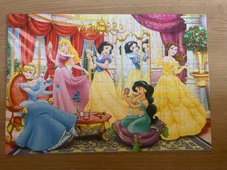 Puzzle infantil de las Princesas Disney de Clementoni. Ideal para los más pequeños. - 104 piezas. - Ilustración de varias princesas Disney juntas.