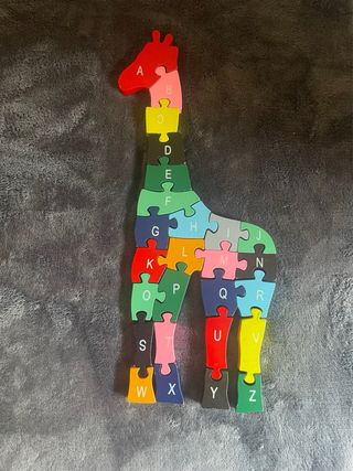 Divertido puzzle de madera con forma de jirafa. Las piezas están numeradas del 1 al 26 para facilitar el montaje. - Piezas de madera. - Diseño de jirafa. - Numerado del 1 al 26.