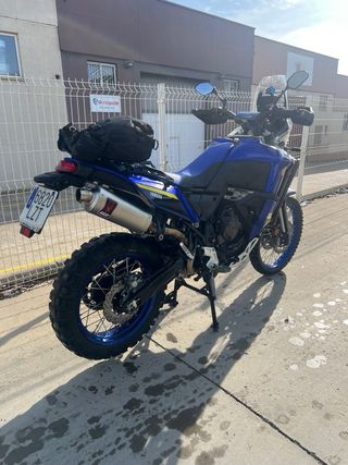 Moto Yamaha Ténéré 700 World Raid en color azul. Se vendo o cambiaria por ktm 350, Husqvarna 350, Gasgas 350 con menos de 100h. Cubre cárter cambiado, mucho más resistente. Portamatriculas cambiado más corto pero desapercibido. Rejilla portaequipajes. Mochila impermeable. Escape Mivv por arriba. Doy escape de serie, otra cúpula nueva, portamatriculas original... Revision realizada en Yamaha oficial, filtros, aceite, pastillas delanteras y traseras...(todo demostrable) La moto como se puede ver, esta perfecta, sin ruidos raros, crujidos etc.