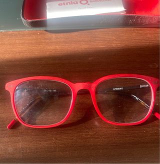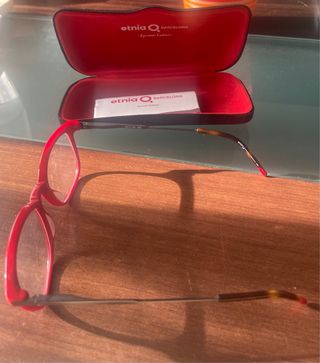 Montura de gafas de la marca Etnia Barcelona. - Color rojo y detalles multicolor. - Incluye estuche. - Sin graduar
