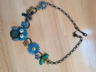 Collar con un diseño encantador de búho y flores. - Colgante principal con forma de búho. - Adornos de flores y hojas. - Cadena con cierre de mosquetón.