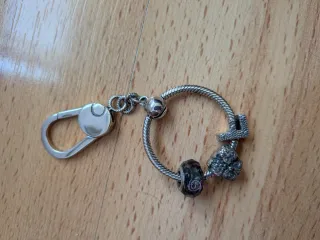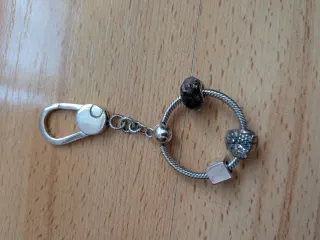 Llavero con un diseño único y varios charms. - Cierre de mosquetón plateado. - Aro plateado con cadena. - Incluye charms de búho, cubo y cuentas. - Diseño original y llamativo.