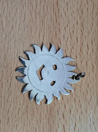 Este colgante tiene forma de sol con una cara sonriente. - Diseño de sol. - Cara sonriente con ojos y boca. - Incluye anilla para colgar.