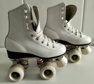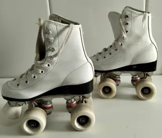 Clásicos patines de cuatro ruedas en color blanco. Perfectos para disfrutar del patinaje. Talle 7 3/4 - Diseño alto tipo bota. - Cordones blancos. - Ruedas blancas.