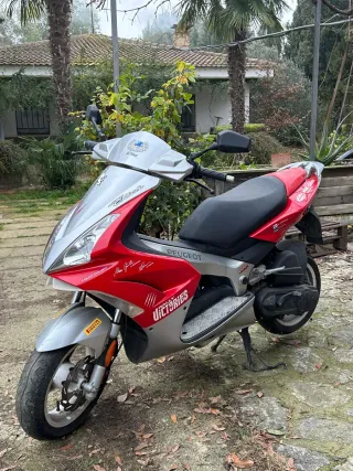 Scooter Peugeot Jet Force de 50cc en llamativo color rojo y plata. Un modelo deportivo y ágil. - Diseño aerodinámico. - Asiento cómodo. - Ruedas de aleación. -ITV pasada hasta el 2026 -tiene todo a la perfección -nunca ha sufrido ningún accidente -prácticamente Nueva - 1800 km