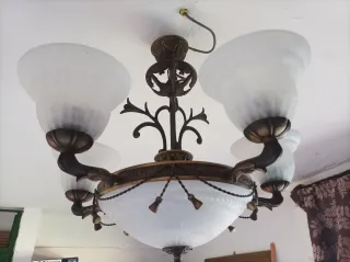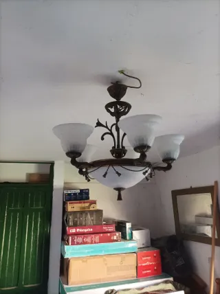 Lámpara antigua metal y cristal