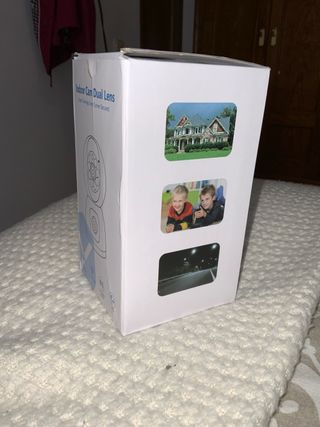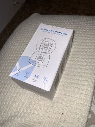 Cámara de seguridad para interiores, sin estrenar. - Doble lente para una cobertura completa. - Detección de movimiento. - Foco (Spotlight). - Audio bidireccional (Two Way Audio). - Movimiento PTZ (Pan-Tilt-Zoom).