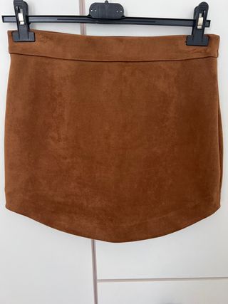 Si compras 4 prendas, la de menor valor es gratis (3+1). Minifalda de Stradivarius en color marrón. - Material tipo ante. - Diseño liso. - Elástico en la cintura